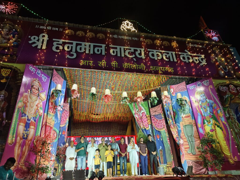 श्री हनुमान नाट्य कला केंद्र अनुपगढ द्वारा रामलीला का शानदार आयोजन किया जा रहा हे कल लीला का बारहवा दिन था जिसमे पवनपुत्र हनुमान द्वारा माता सीता की खोज लंका दहन सहित अनेक मनमोहक द्रश्य दिखाए गये अनुपगढ के गणमान्य नागरिकों सहित हजारों दर्शको ने शांतिपूर्ण बैठकर लीला का आनन्द लिया राम रावण मेघनाथ पवनपुत्र हनुमान व् माता सीता का कलाकारों ने शानदार रोल अदा किया कलाकारों के बोलने देखने बॉडी रियक्शन के तालमेल की दर्शको ने खूब प्रसंशा की सभी कलाकार व् कार्यकर्ता देनिक कार्य से जुड़े हुये हे जो अपने देनिक कार्य निपटाने के बाद लीला की तेयारी हेतु शाम पांच बजे लीला स्थल पर पहुंच जाते हे व् रात तीन बजे तक कड़ी महनत कर हम तक मनमोहक द्रश्य पहुंचाते हे अगले दिन फिर अपने रोजमर्रा कार्य पर जाते हे इसलिए जनचेतना आपसे अपील करता हे कलाकारों व् कार्यकर्ताओ की होंसला अफजाई हेतु लीला का आनन्द लेने आप परिवार सहित जरुर पहुंचे वही दयाराम लिम्बा अपने यूट्यूब चेनल दया ब्लॉग पर लीला का लाइव प्रसारण दिखाते हे